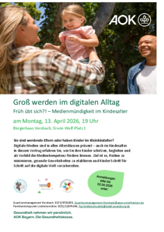 Groß werden im digitalen Alter - Früh übt sich?! Elternvortrag in Versbach - in Kooperation mit der AOK und dem Quartiersmanagement Versbach